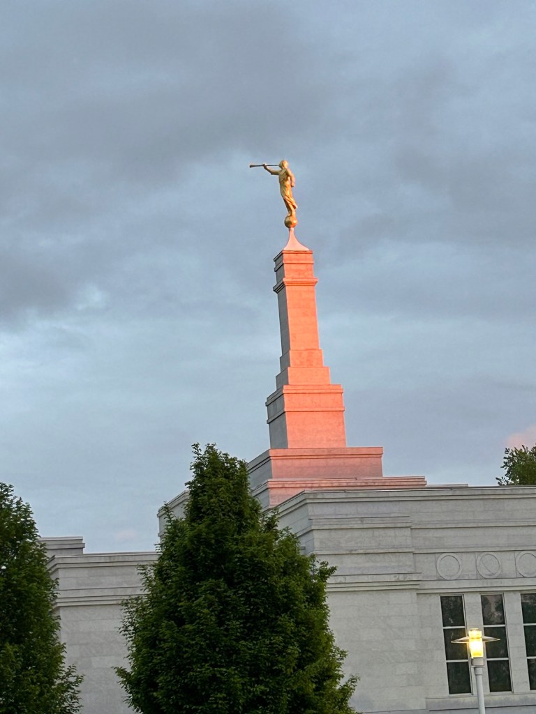 We were privileged to have a Temple Workers devotional on Sunday evening. Elder Mathias and Sister Irene Held spoke to us as well as our temple President and matron, the Kimblers. All the talks were so good and well prepared to touch our hearts. The closing hymn was, “The Spirit of God”. There were probably about 100 people in attendance. When the opening notes started playing, the chapel felt different and when the singing started, I immediately noticed that there were at least 300 to 400 people singing. Heavenly angels were singing with us. The organist was spectacular and she let it fly for the last verse; all the bells and whistles were in operation for that verse. At the close of the meeting, I turned to the ladies around me and said, “Did you hear that song with the angels joining us?” They had noticed it too! It was a very special experience.
