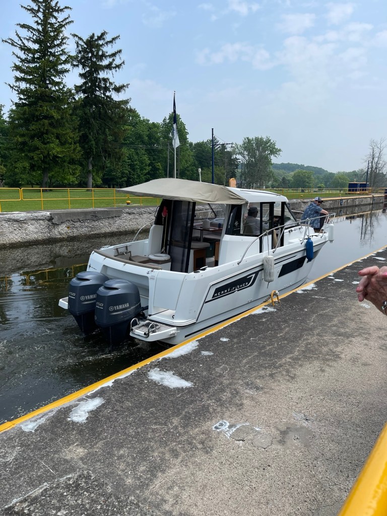 We are loving living in Palmyra, “The Queen of Canal Towns”. Good fortune smiled upon us whilst on the walking tour. I heard a klaxon and wondered what it could be. It seems a boat had called ahead to use the lock. Our group waited and chatted with the lock operator. He used to be an operator down at Lyons where there is another lock. It was absolutely fascinating to watch the boat enter the lock and then pull up alongside the edge of the canal. Then the lock operator closed the lock behind the boat and once the water had finished rushing through the lower part, the next part of the lock opened so that they could carry on towards Lyons. I chatted with the men on the boat as they were moving the boat for an uncle.