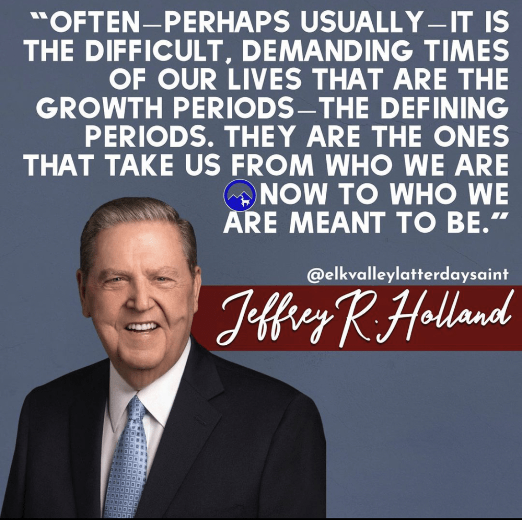 Last week, I was thinking about the news of Elder Holland being admitted to the hospital and I knew that he would be leaving us soon to join his beloved wife. I am loving all the accounts that people are sharing of their experiences with Elder Holland. He truly was a disciple of Christ. His example makes me want to be a better disciple too.