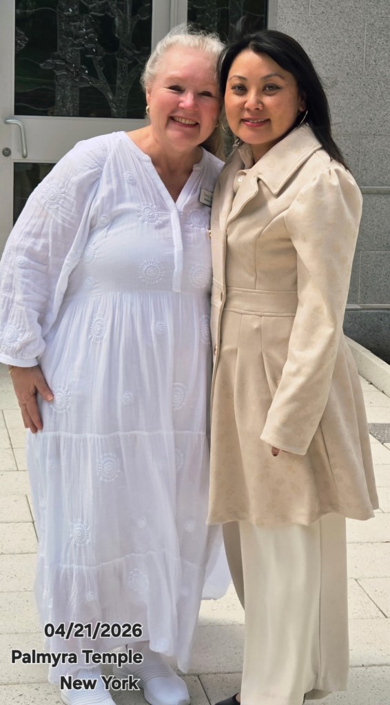 Each time this dear lady came to the temple over the past year, I happened to see her. She was always happy to see me and we would embrace and excitedly have a quick chat. This past week she came to receive her own endowment. The way the day went, I was able to be with her throughout her time in the temple. I told her that her mother is very proud of her. We both shed tears of gratitude and thankfulness. She asked me to come and have a photo with her. I will forever have her in my heart.