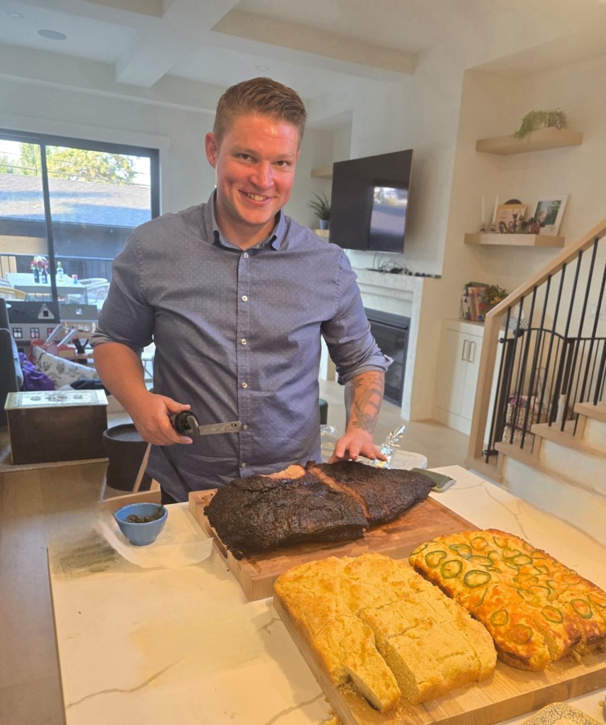 Thursday was a rehearsal dinner at Kaitlin and Brian’s new home in Altadore. Braeden smoked a brisket and some of Katina’s family came to. We finally got to meet her brother and sister-in-law as well as their son. Her dad’s youngest brother and his wife came. Katina asked her uncle to walk her down the aisle as her dad had passed away. He was so honored to do so because his children are all boys. We went to the park with Finn and Ainsley. Mason and Carter were worn out by playing with the little cousins. That night, Mason said to me, “Oh, I’m already sore!”
