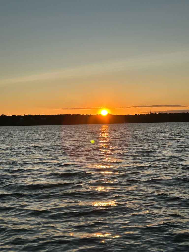 Girls just want to have fun until the water gets wild!We are needing to tack. Gennaro is on the phone with his son. We are starting to scramble as we need to make a move. It was a crazy moment!Sun is setting on the west shore of Seneca Lake It was a wild hair night in the wind.