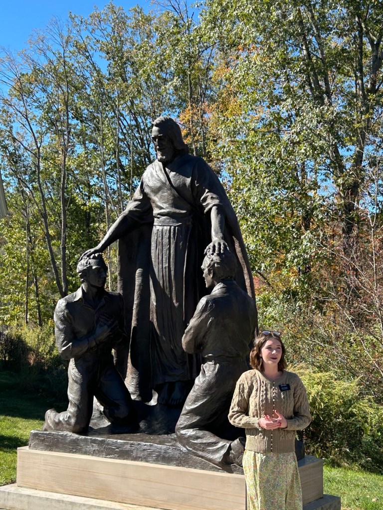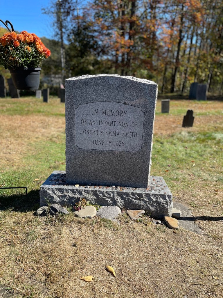 We arrived at the Visitor’s Center and waited for the next tour which included two reconstructed homes, statues, and historic landscapes. Erik and I also walked to the McKune Cemetery where Joseph and Emma buried their first child, a son. His grandparents, Isaac & Elizabeth Hale have headstones are next to his headstone.